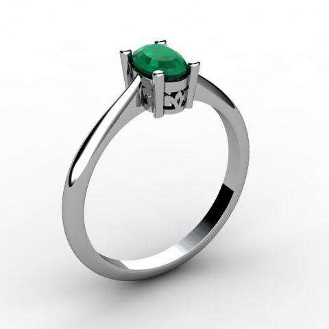 Emerald 0.52 ctw Ring 14kt White Gold **|**|** Mainstone: Emerald ; CTW: 0.52 ; Shape: Oval ; Gem Size: 6x4mm ; Metal / Purity: 14kt White Gold ; MSRP: $1200