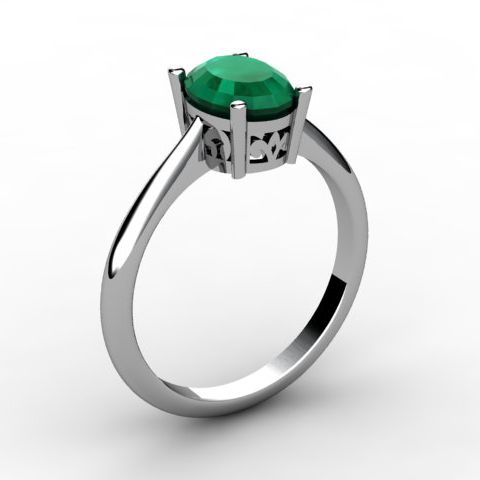 Emerald 0.85 ctw Ring 14kt White Gold **|**|** Mainstone: Emerald ; CTW: 0.85 ; Shape: Oval ; Gem Size: 7x5mm ; Metal / Purity: 14kt White Gold ; MSRP: $700