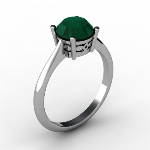 Emerald 1.70 ctw Ring 14kt White Gold **|**|** Mainstone: Emerald ; CTW: 1.70 ; Shape: Round ; Gem Size: 7mm ; Metal / Purity: 14kt White Gold ; MSRP: $700