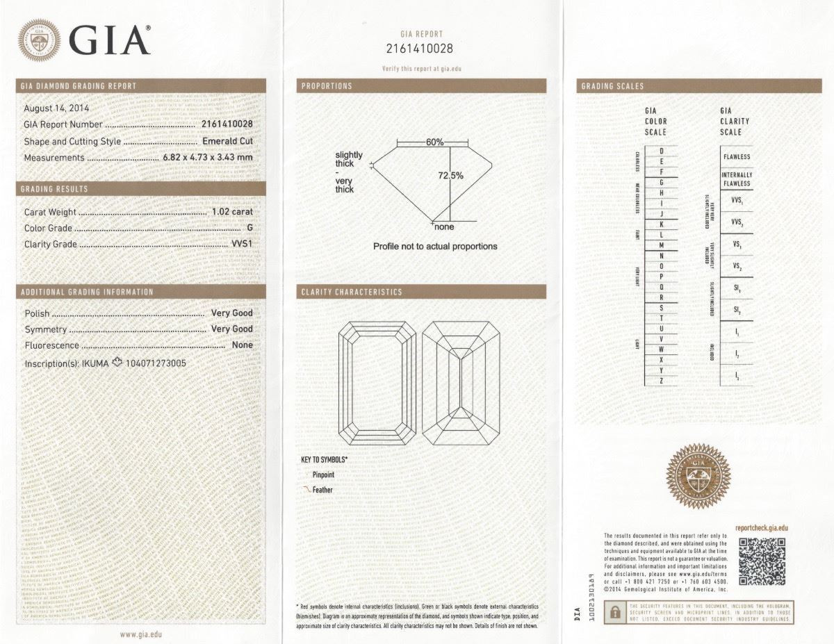 This stone is a 1.02ct., G, VVS1 GIA certified diamond.