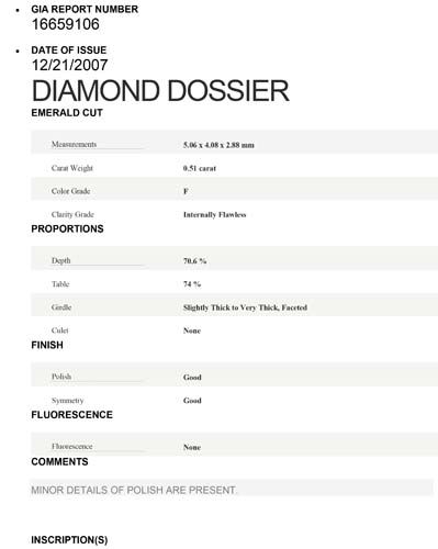 Emerald Diamond 0.51ct :F,IF,5.06*4.08*2.88:GIA:Cert.:16659106