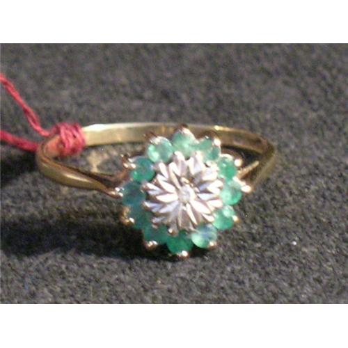 <tr><td>Title:Emerald & Diamond 9K Gold Size 9</td></tr>