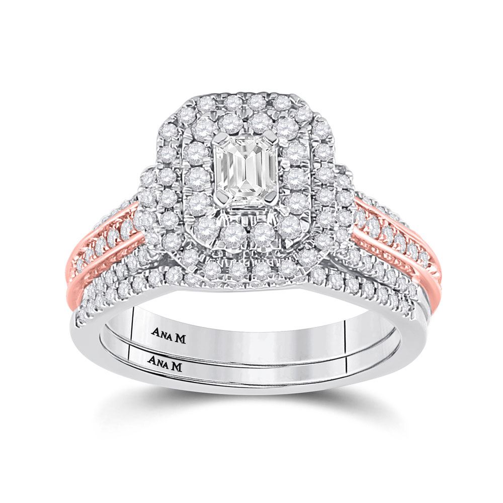REF-120X5A ---- Emerald Diamond Bridal Wedding Ring Band Set 1 Cttw 14kt Two-tone Gold