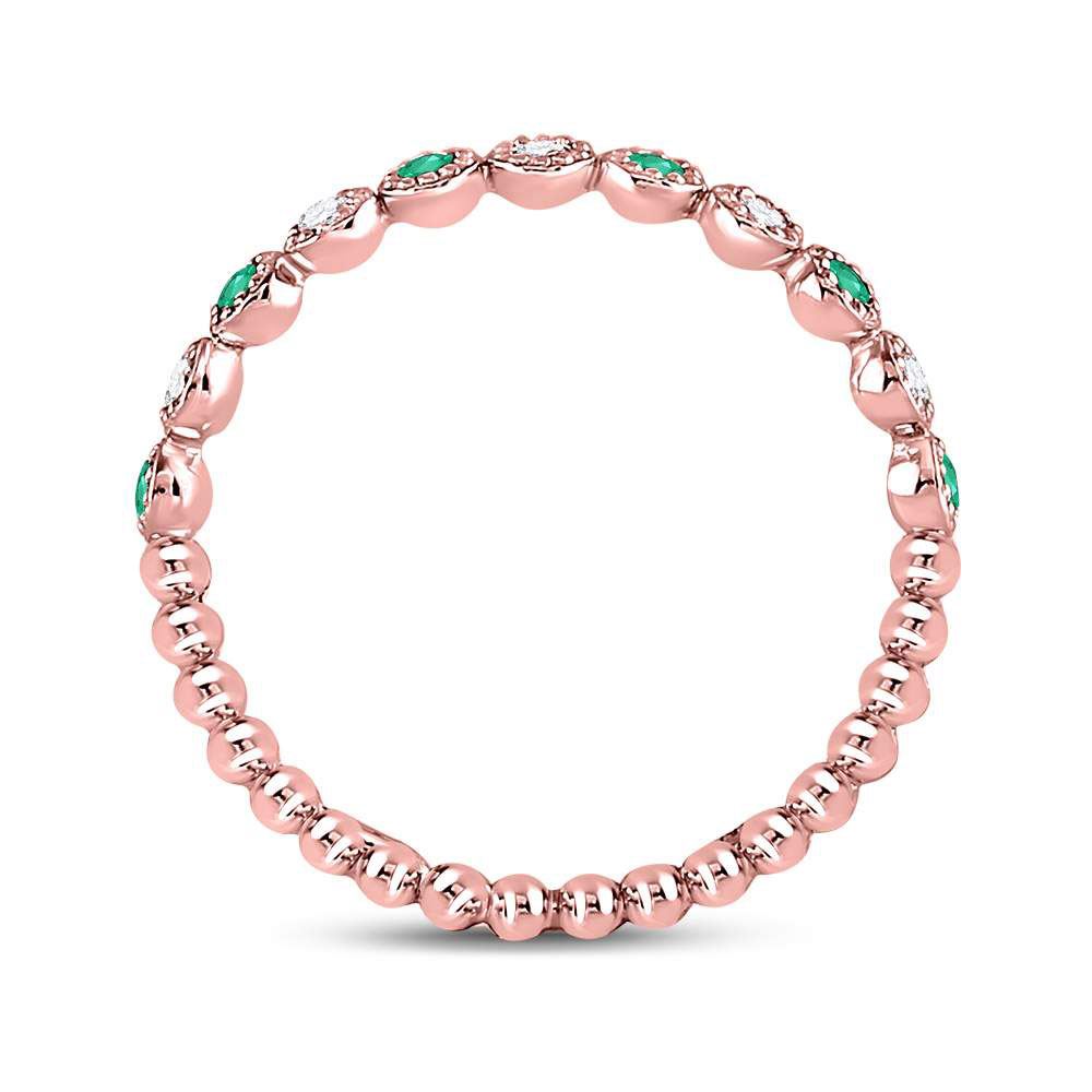10kt Rose Gold Womens Round Emerald Diamond Dot Stackable Band Ring 1/6 Cttw