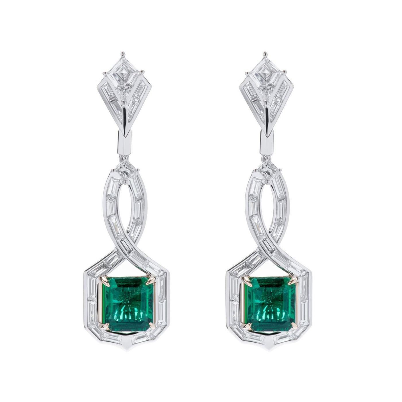 18k Gold (you may choose white, yellow or Rose Gold) , Lab Created Emerald 5.02 Carats ; lab Diamonds 5.11 Carats , Diamond Color/Clarity E-F/VVS-VS;