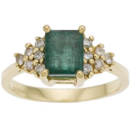 <B>Emerald, Diamond, Gold Ring</B></I><BR><BR>The ring features an emerald-cut emerald measuring 6.75 x 5.60 x 3.85 mm and weighing approximately 1.00 carat, enhanced by full-cut diamonds, set in 14k yellow gold. Total diamond weight is approximately 0.25 carat. Gross weight 3.40 grams. <BR>*Note: Size 6 (sizeable) <B>Condition Report:</B> Good condition.<BR>Emerald has inclusions visible to the unaided eye.<BR><BR><b>Shipping:</b> Miscellaneous Collectibles, Smal (<a target="_blank" href="http://www.heritageauctions.com/common/shipping.php">view shipping information</a>)