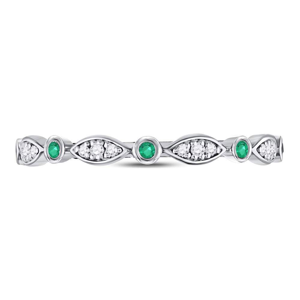 10kt White Gold Womens Round Emerald Diamond Marquise Dot Stackable Band Ring 1/8 Cttw