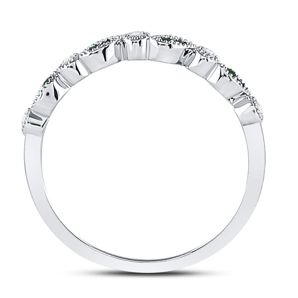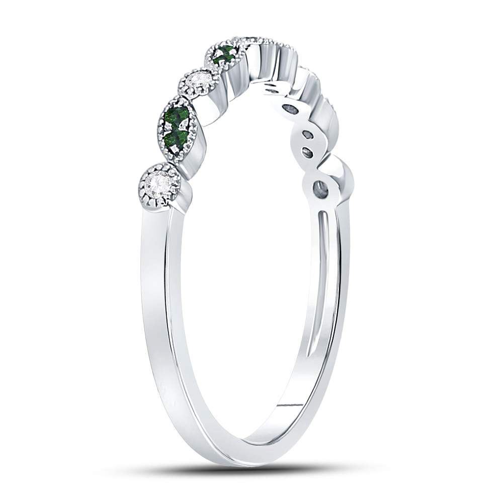 10kt White Gold Womens Round Emerald Diamond Milgrain Stackable Band Ring 1/10 Cttw