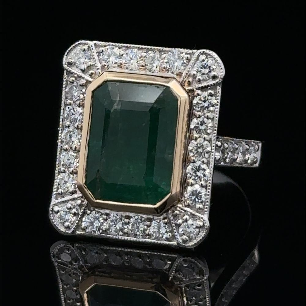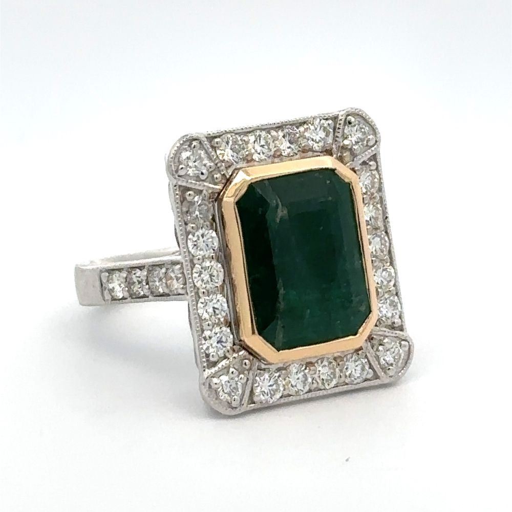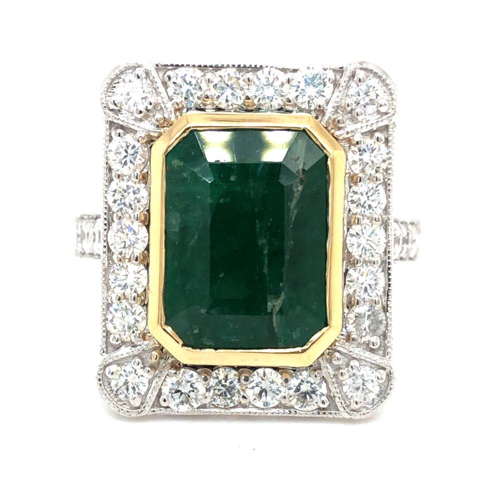 DESCRIPTION DETAIL: Genuine Emerald and Earth-Mined Diamond Ring