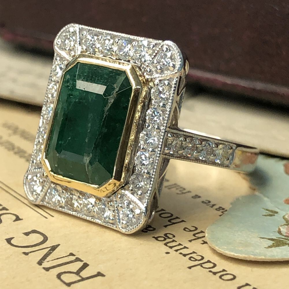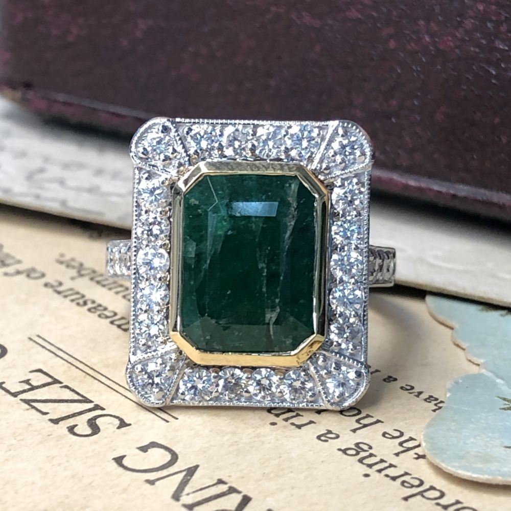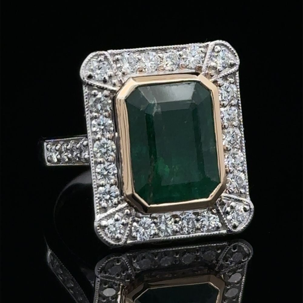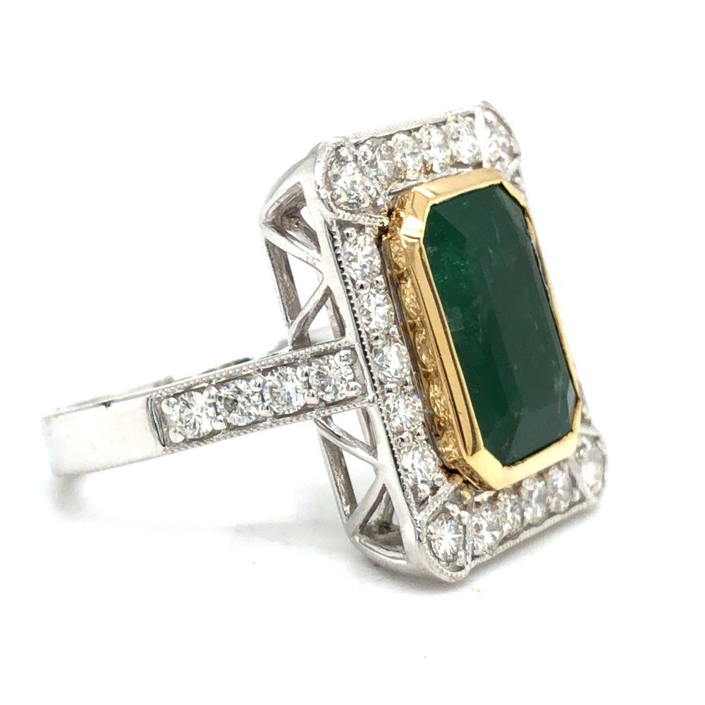 DESCRIPTION DETAIL: Genuine Emerald and Earth-Mined Diamond Ring
