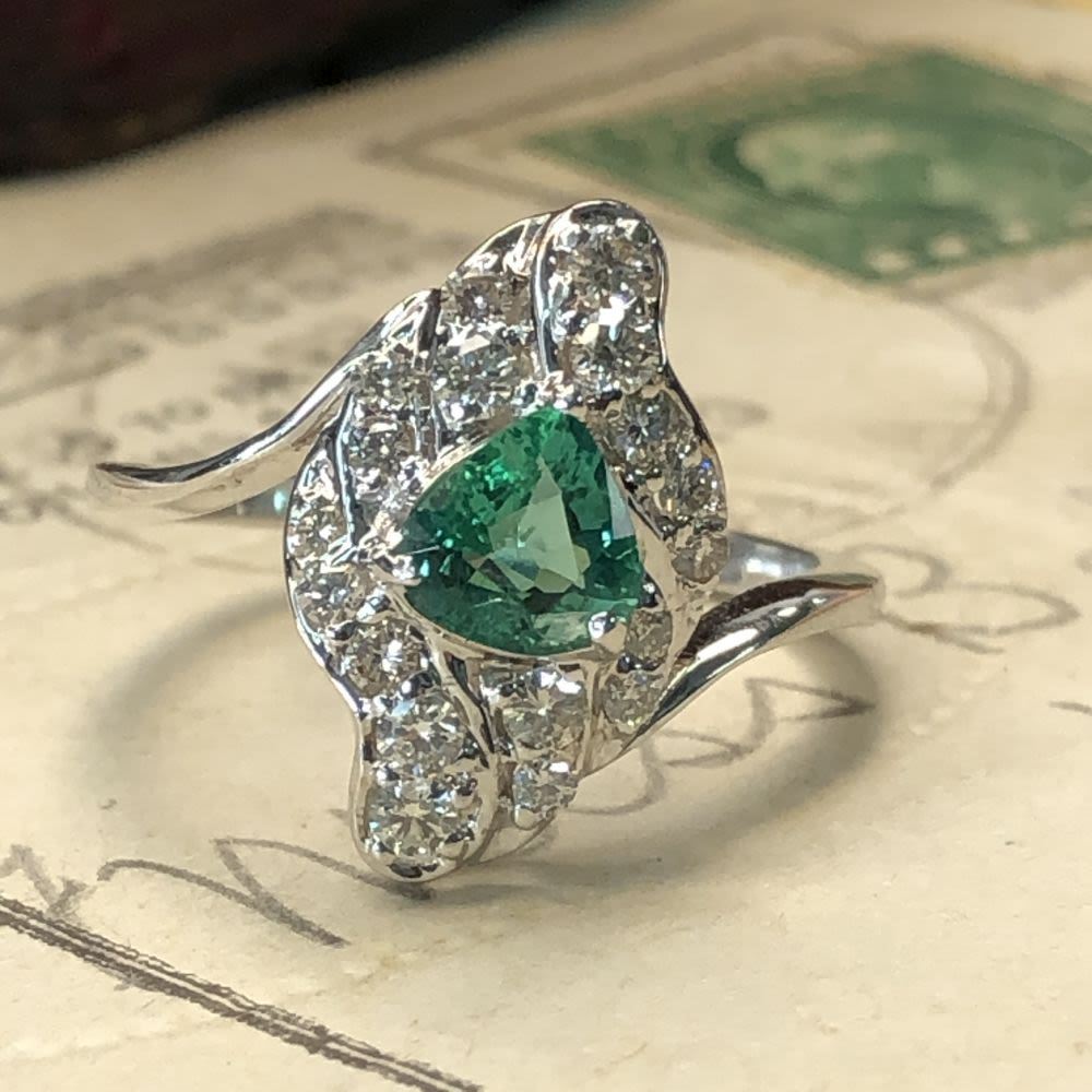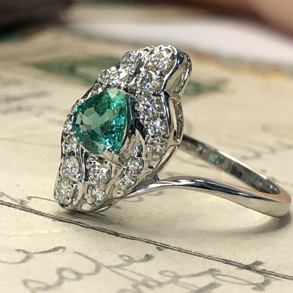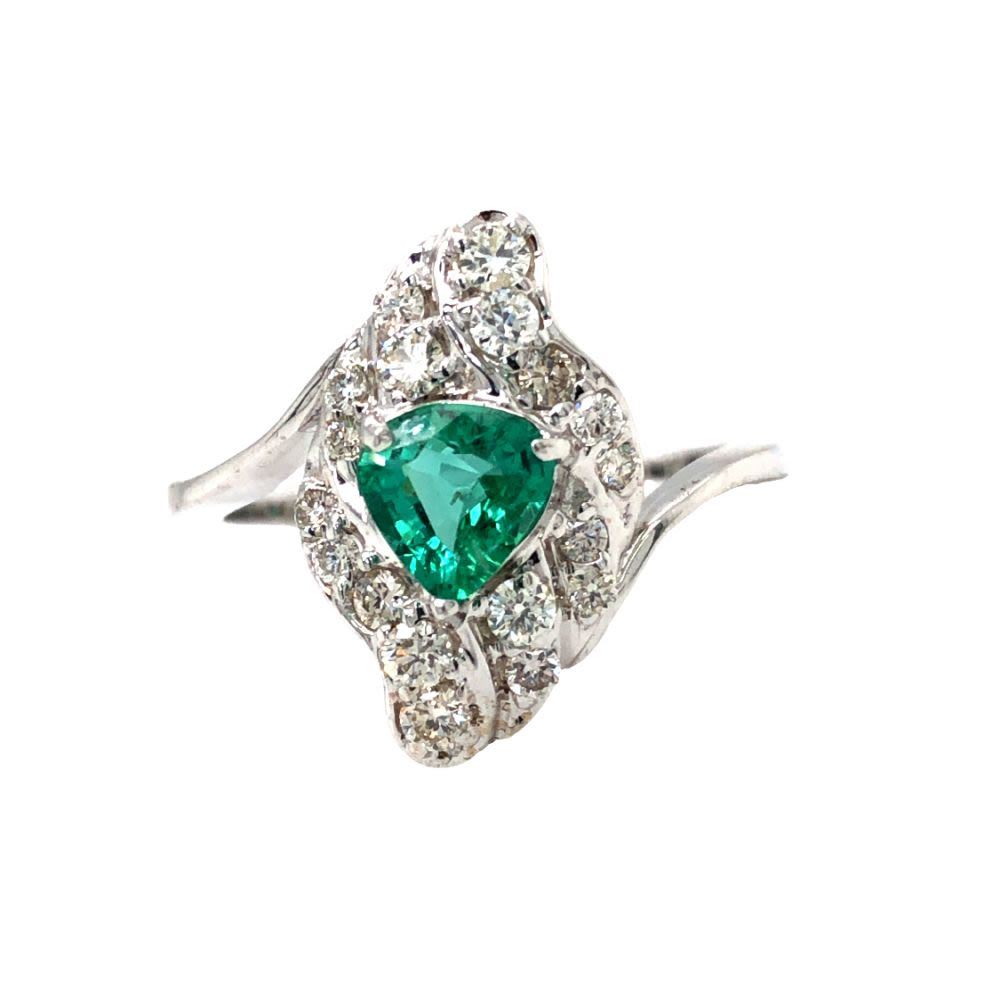 TITLE DESCRIPTION: Deco Style 18k Emerald & amp; Diamond Ring