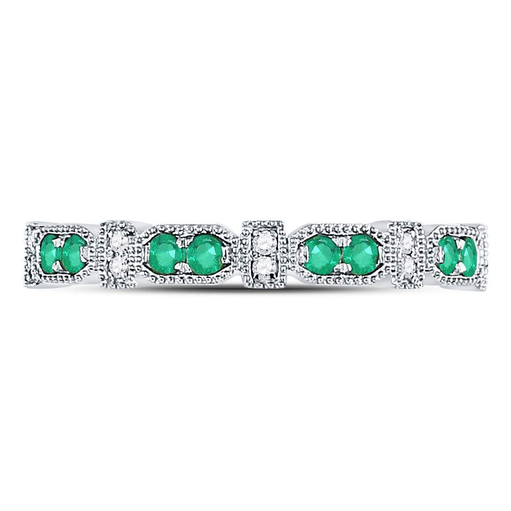 10kt White Gold Womens Round Emerald Diamond Stackable Band Ring 1/4 Cttw