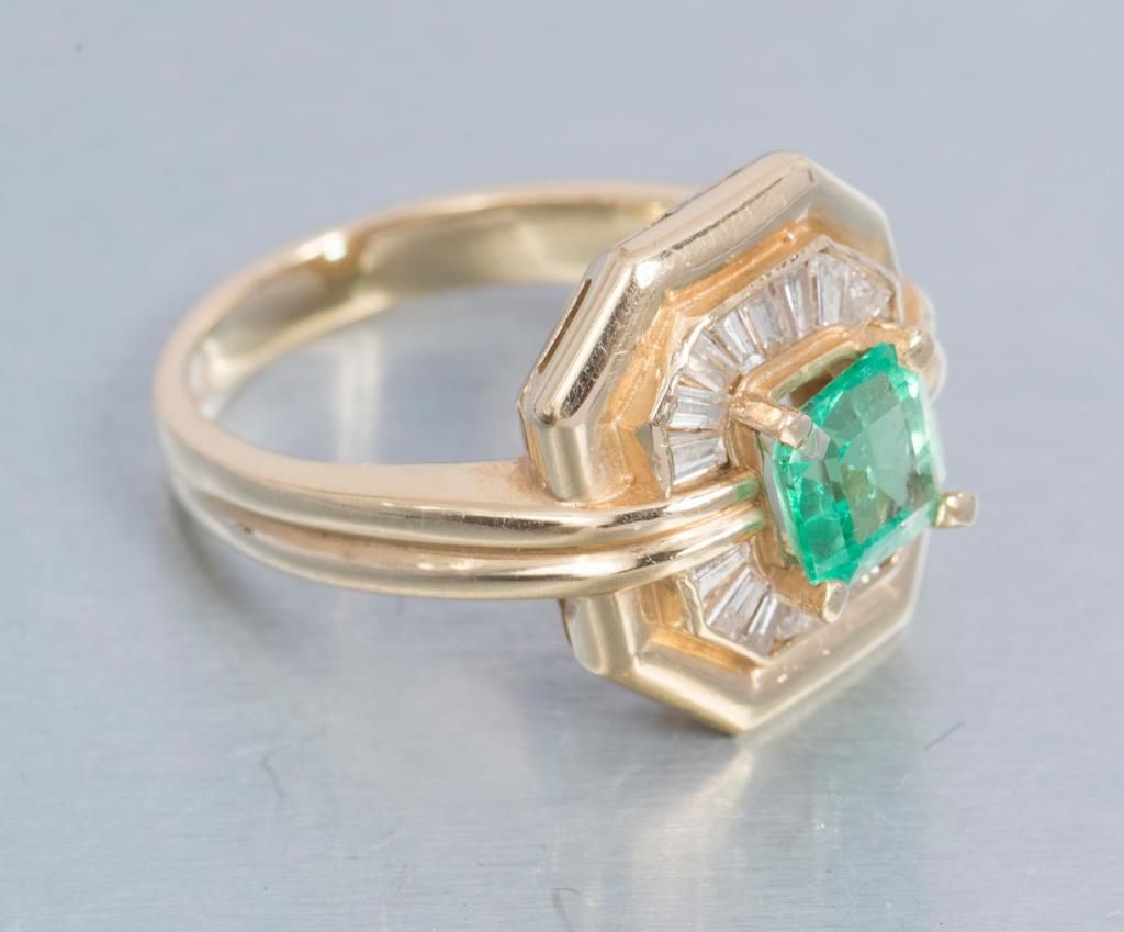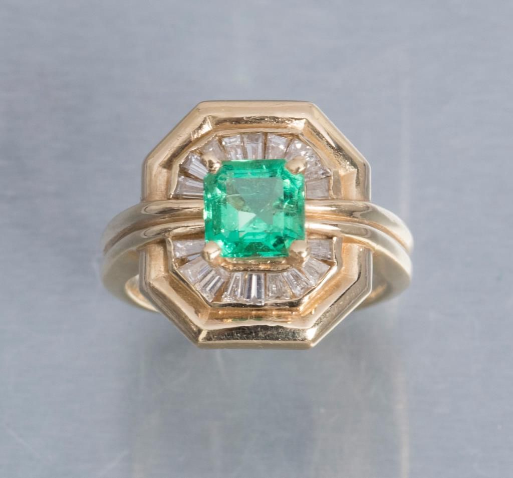 Emerald & Diamond in 14K; elongated shaft to slip over knuckles; beautifully designed. Est.: $750-$1,500.