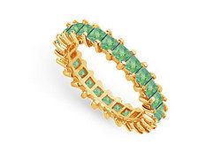 Lush-green princess-cut emeralds are beautifully prong-set all around this 14K yellow gold circle. This eternal circle symbolizes your never ending hope in life. This eternity band has a total gem weight (TGW) of 3.00 ct. Being a May birthstone; it makes a great gift for a May born.