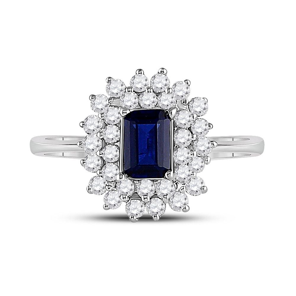 10kt White Gold Womens Emerald Lab-Created Blue Sapphire Solitaire Ring 1-1/3 Cttw