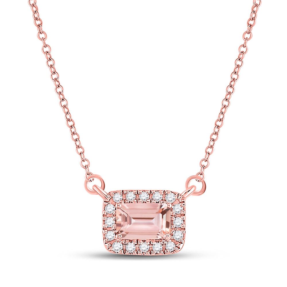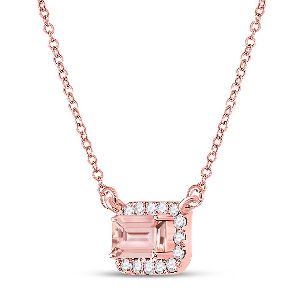 10kt Rose Gold Womens Emerald Morganite Solitaire Necklace 5/8 Cttw