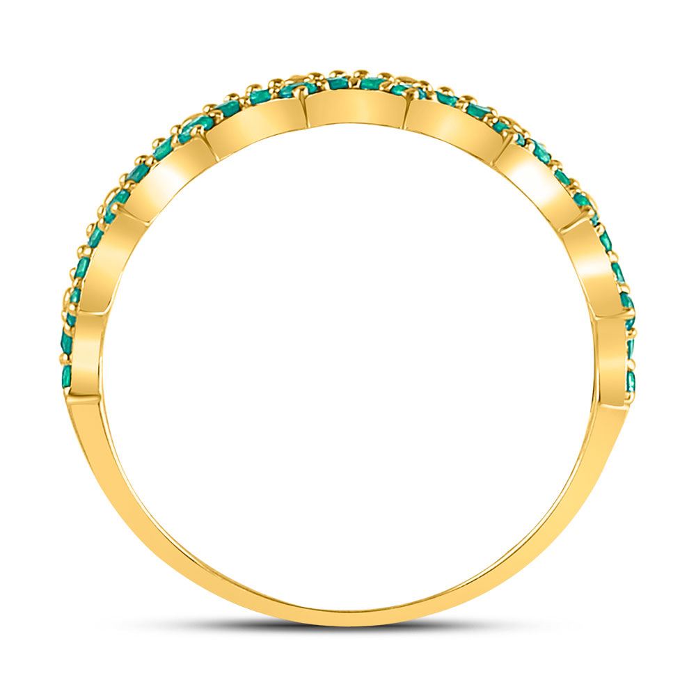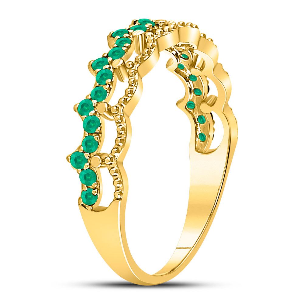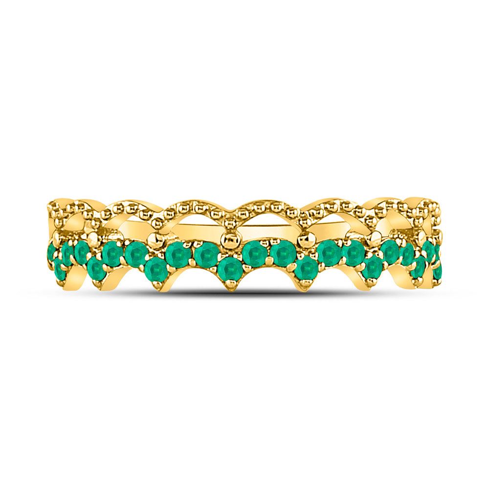 10kt Yellow Gold Womens Round Emerald Scalloped Stackable Band Ring 1/4 Cttw
