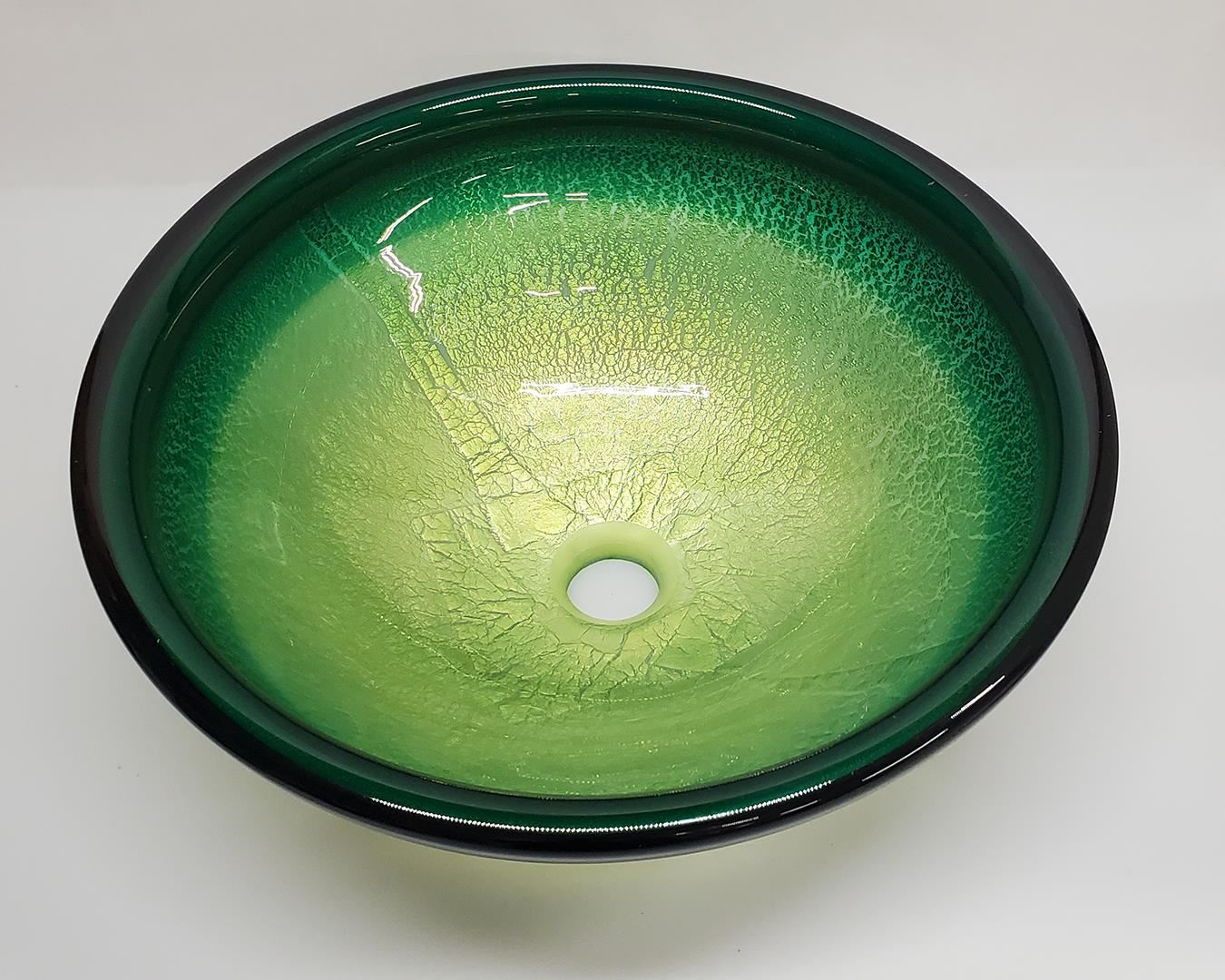 Handmade glass sink, this piece measures 16.25" diameter and 6" tall.