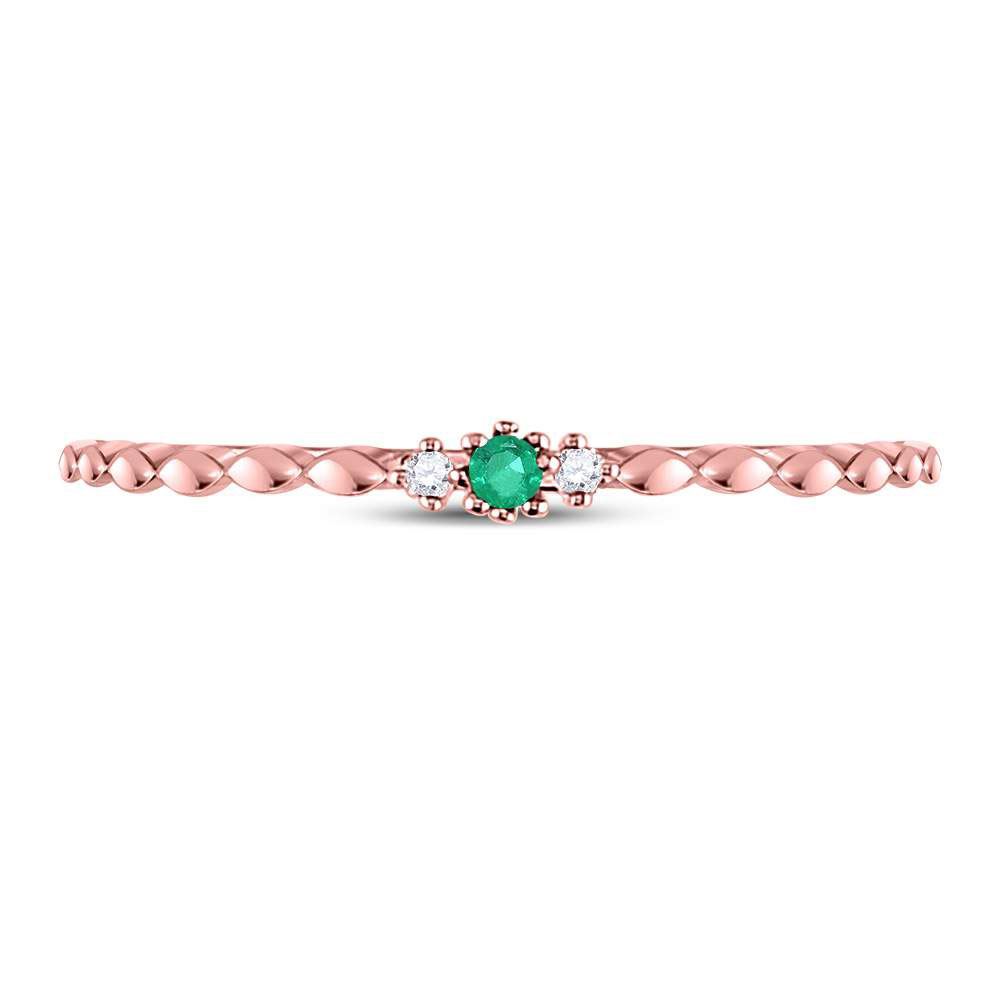 10kt Rose Gold Womens Round Emerald Solitaire Diamond-accent Stackable Ring .03 Cttw