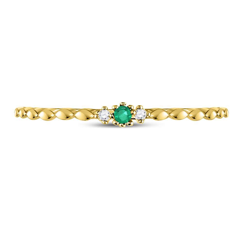 10kt Yellow Gold Womens Round Emerald Solitaire Diamond-accent Stackable Ring .03 Cttw
