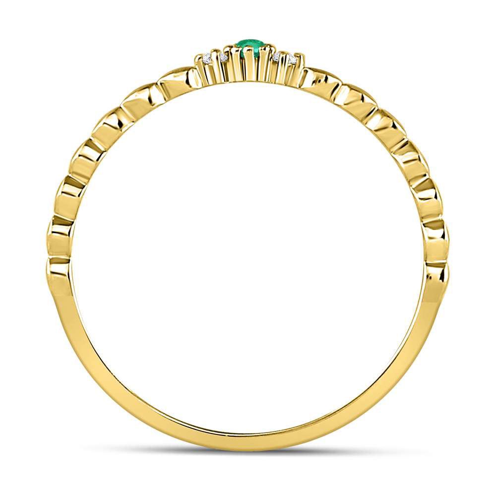 table {border-collapse: collapse; width: 100%; font-size: 1.2em; border: 1px lightgrey solid;} th, td {text-align: left; padding: 5px;} tr:nth-child(odd) {background-color: #efefee;} tr {border-bottom: 1px lightgrey solid;} Metal Type10kt Yellow Gold Item Number128028 StyleStackableRing SizeRing size selectableCarats Total Weight *.03 Ct.t.w.Primary Gem TypeNatural EmeraldPrimary Gem ShapeRoundPrimary Gem Color / ClarityGreen / I1Gem 2 TypeDiamondGem 2 ShapeRoundGem 2 Color / ClarityG-H / I2Gram Weight1 grams (approximately)