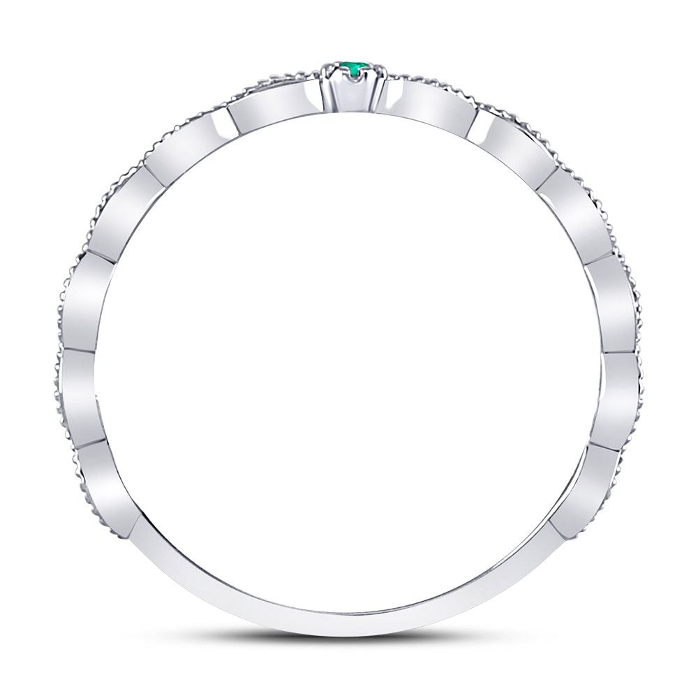 10kt White Gold Womens Round Emerald Solitaire Milgrain Stackable Band Ring .01 Cttw