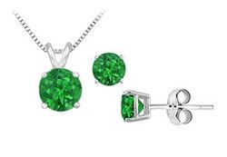 Beautiful matching round prong set frosted emeralds stud earrings and solitaire pendant set makes a perfect gift for someone special. Both the earrings and pendant set are crafted in .925 sterling silver rhodium and has a total weight (TGW) of 2.00 carats. These earrings come with push back lock and also solitaire pendant with a standard 16 inches sterling silver chain.