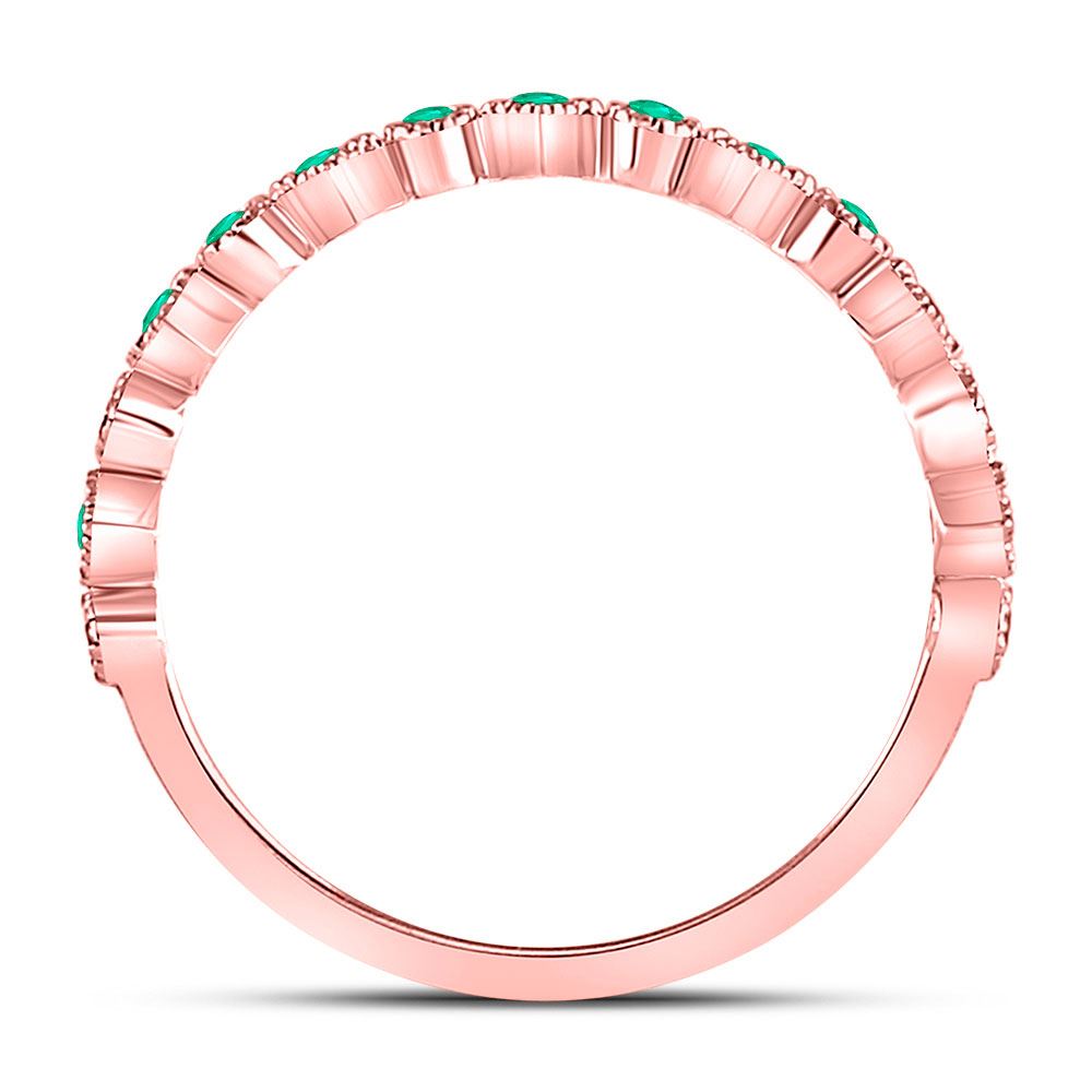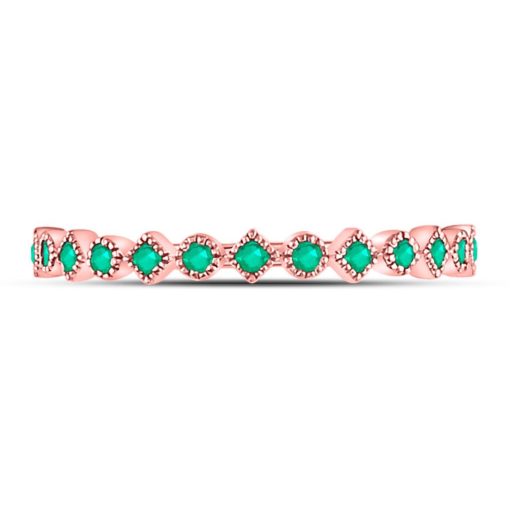 10kt Rose Gold Womens Round Emerald Square Dot Stackable Band Ring 1/5 Cttw
