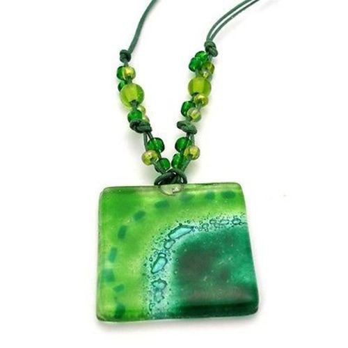 Emerald Sun Translucent Square Fused Glass Pendant Neck **|**|** Deep emerald #CJGNSQU_209037