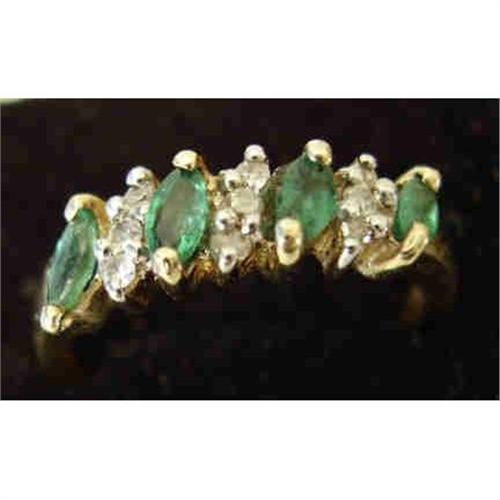 Size 6. 1/3 carat emeralds. 9 small diamonds. very pretty.