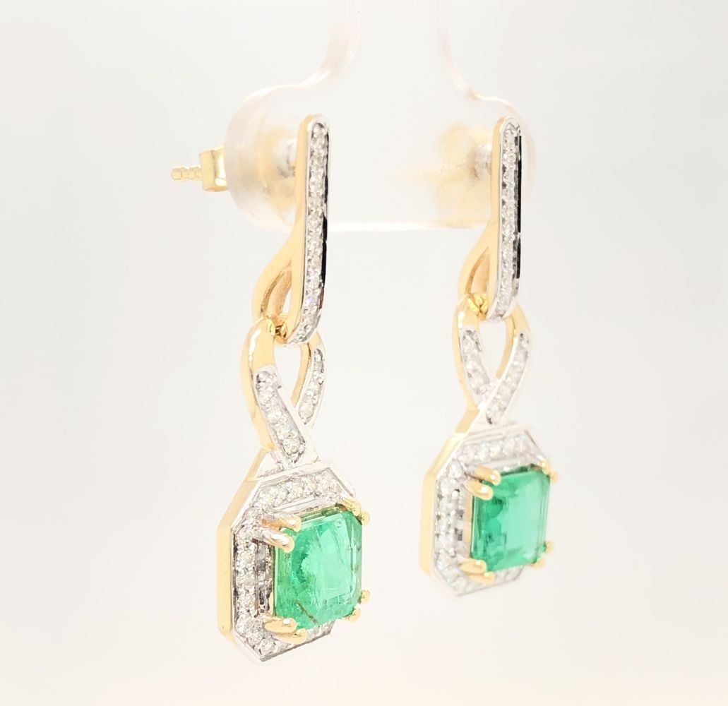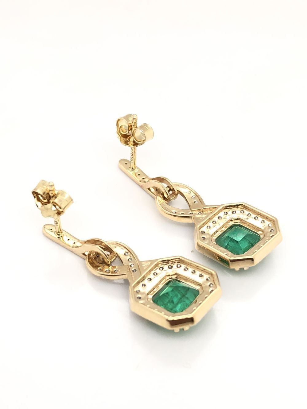 ADDITIONAL INFORMATION: This is a beautiful& nbsp; pair of yellow gold earrings featuring emeralds that are double prong-set with round, brilliant-cut diamonds in the drop stems and halos.& nbsp; They