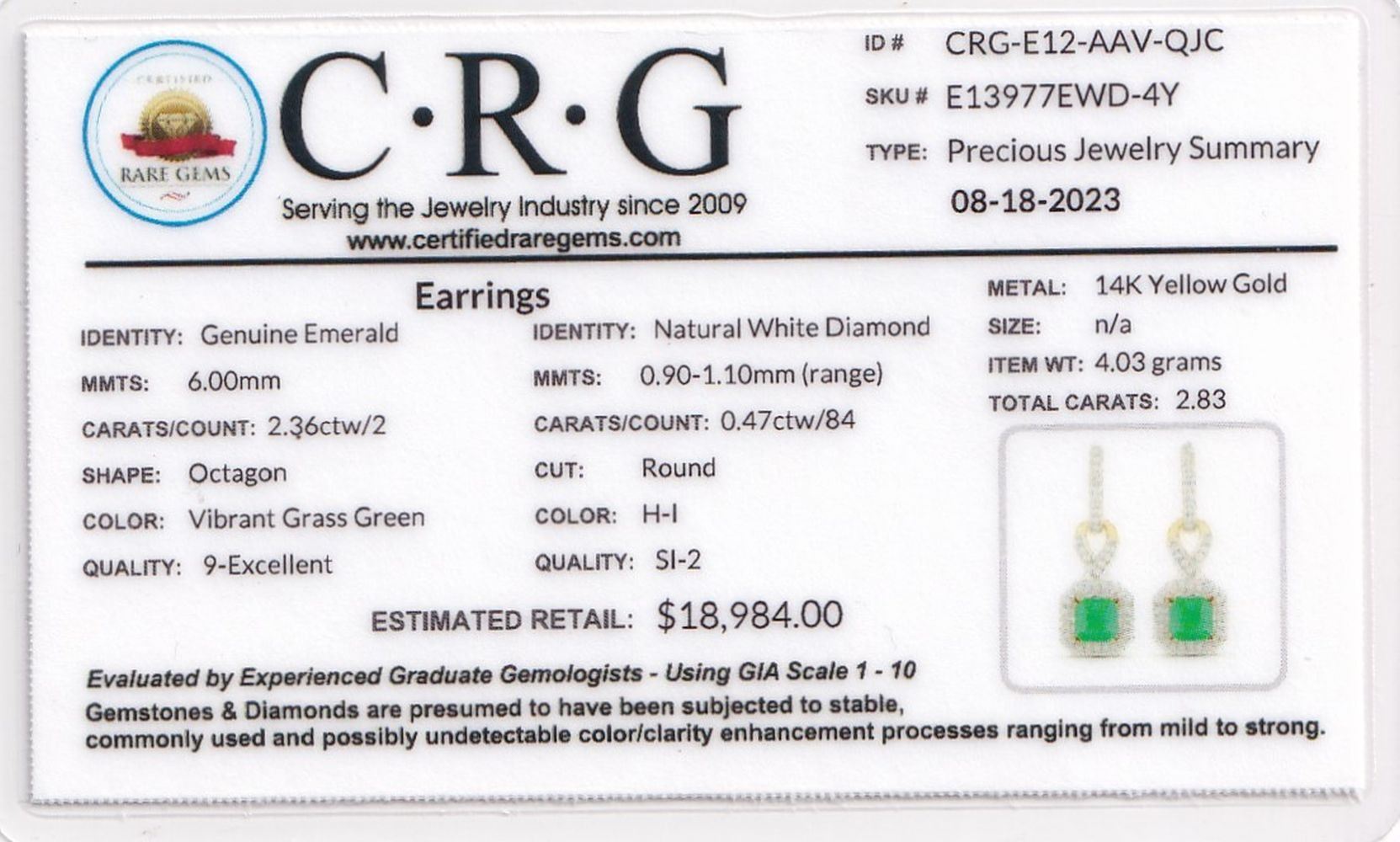 DESCRIPTION DETAIL: Genuine Emerald and Earth-Mined Diamond Earrings& nbsp;