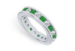 Lush-green emeralds alternate with brilliant-cut round diamonds in the rich platinum channel-setting. This eternal circle symbolizes your never ending hope in life. This eternity band has a total gem weight (TGW) of 2.00 ct. Being a May birthstone; it makes a great gift for a May born.