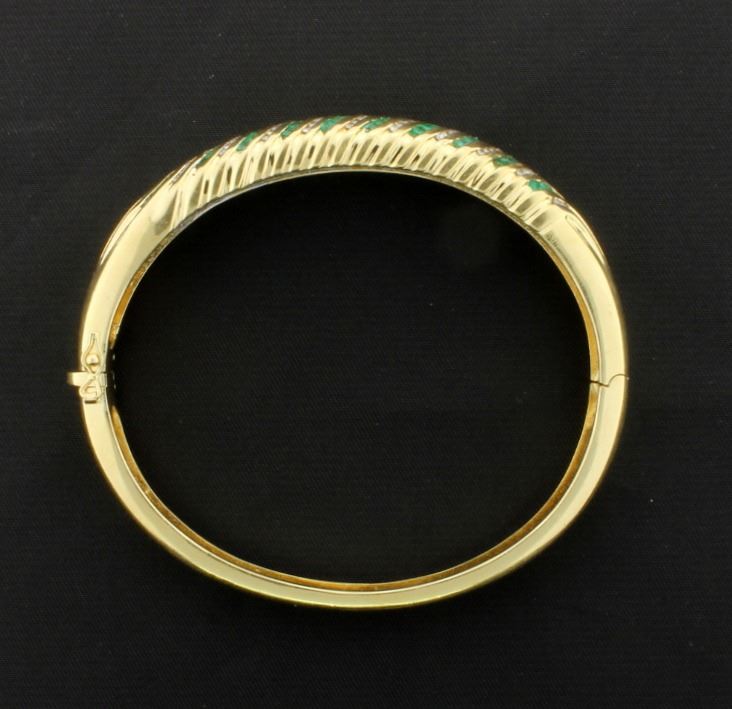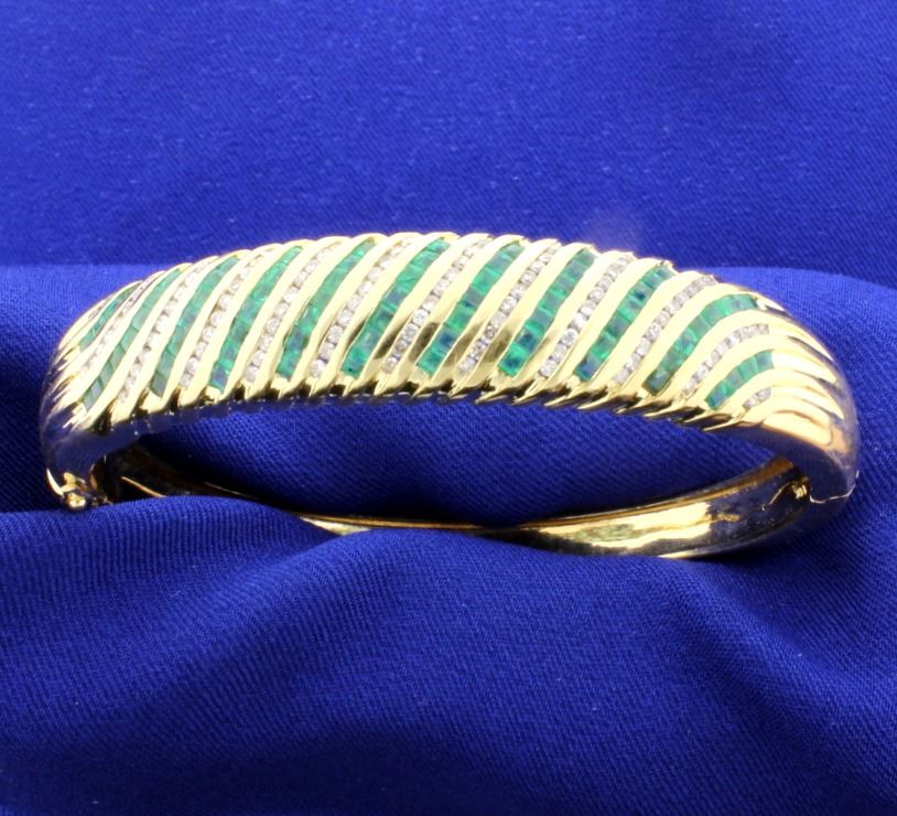 Emerald and Diamond Hinged Bangle, 2.25" in Diameter, 14K bracelet