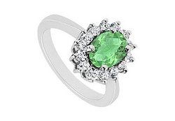 Exuding brilliance an emerald is set in the center and is complimented by sparkling round diamonds. Rendered in 14K white gold this gemstone ring has a total weight (TGW) of 1.50 ct.