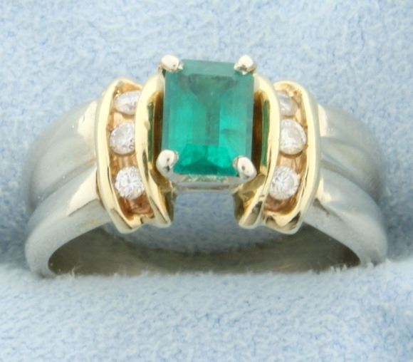 In 14K yellow gold, it contains a 1ct natural emerald with excellent color and clarity. Also it contains six high quality .02ct diamonds. Size 7 7.4g