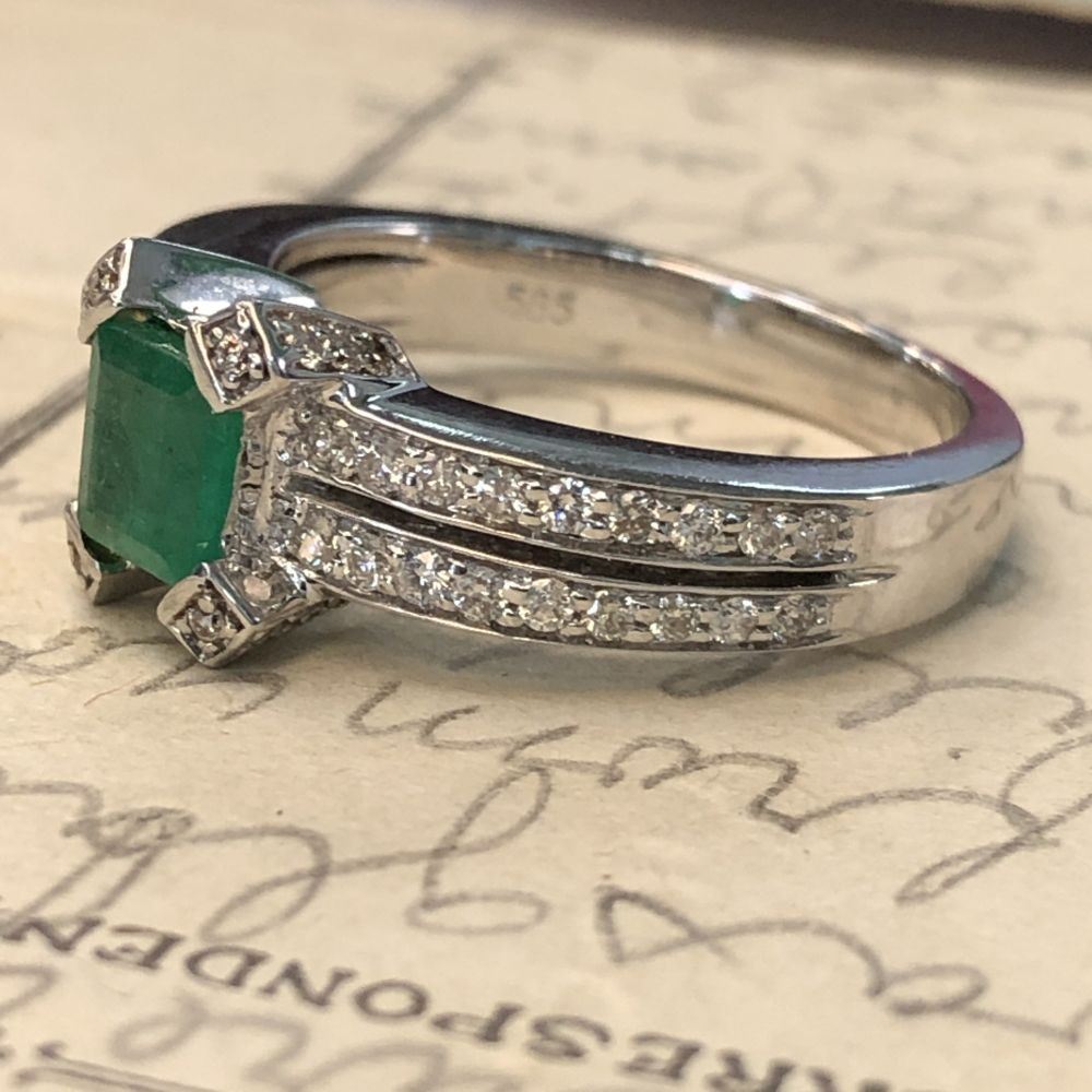 DESCRIPTION DETAIL: Genuine Emerald and Earth-Mined Diamond Ring.