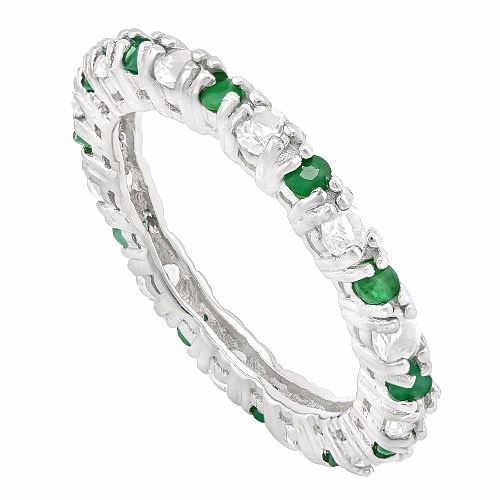 Stacking rings are so fun! This ring contains alternating genuine Emerald and White Topaz gemstones set in Platinum over Sterling Silver. The gems go completely around in a circle, and the ring is approx. 2.35mm wide (with 3.75mm height). Size 7. 2.6g