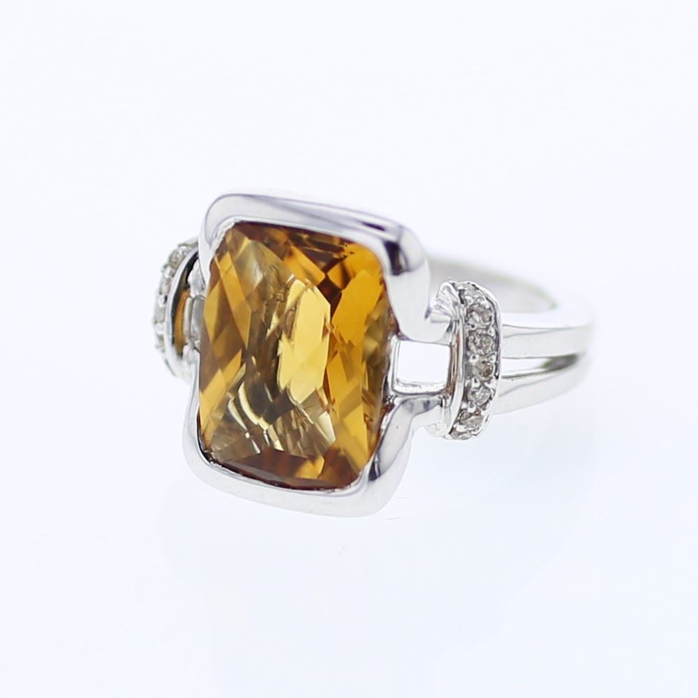 Emerald-cut Bezel-set Citrine Diamond Ring in 14K White Gold