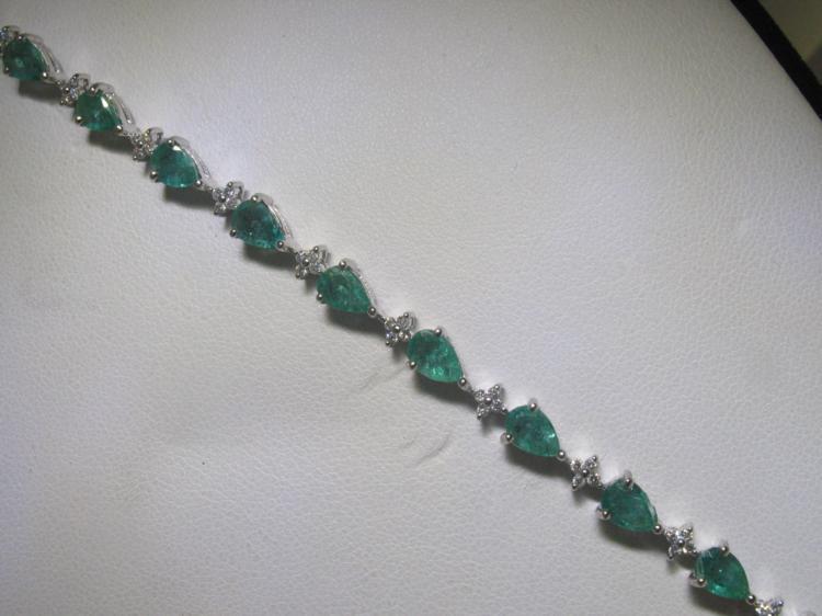 Total Weight of Round Diamonds - 0.51 CT * Total Weight of 17 pear-shaped Emeralds - 5.87 CT * 14K White Gold - 8.27 grams * Appraised Value: $ 8,160.00 *