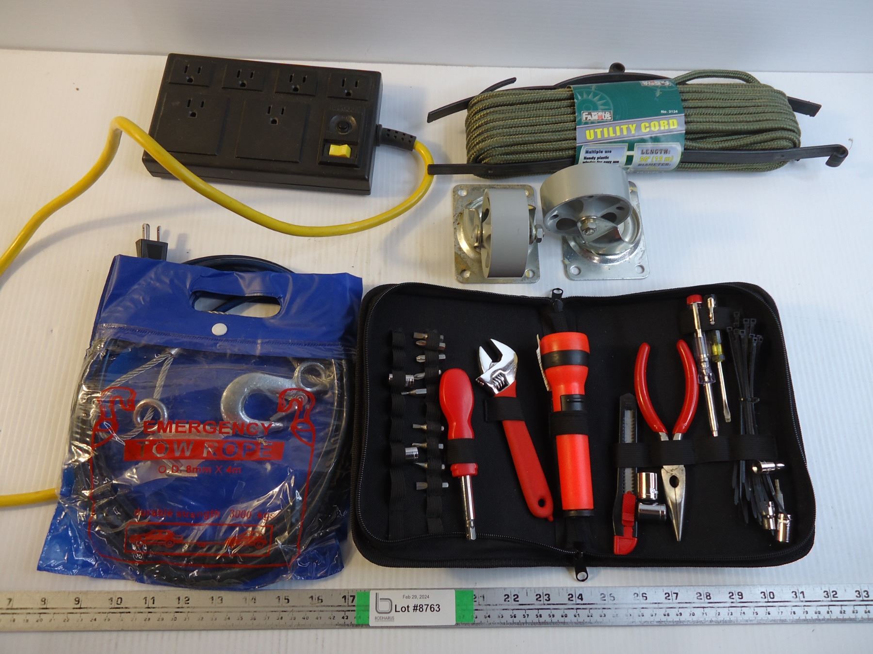 Emergency Tow Rope, Utility Cord,(2) Caster Wheels, Tool Kit and Power Bar