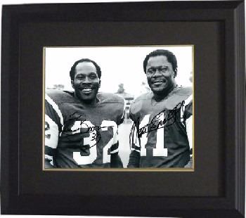 Emerson Boozer played his entire professional career with the Jets. Boozer was a member of the Jets team that defeated the NFL's champion Baltimore Colts, 16-7, in Super Bowl III. Jets coach Wilbur 'Weeb' Ewbank utilized Boozer in pass blocking schemes then new to football. In blocking for both Matt Snell and Joe Namath, Boozer was part of two outstanding teams that narrowly lost just three games in 1968 and went 10-4 in 1969. In his rookie year with the New York Jets, Snell rushed for a team-record 180 yards against the Houston Oilers on his way to a 945-yard season and AFL Rookie of the Year honors. Snell went on to become an AFL Eastern Division All-Star in 1964 and 1966, and the Sporting News All-AFL fullback in 1969. Emerson Boozer & Matt Snell have both hand autographed this 8x10 Photo. Certificate of Authenticity from Athlon Sports. Custom Black Mat and Premium Black Frame as shown.