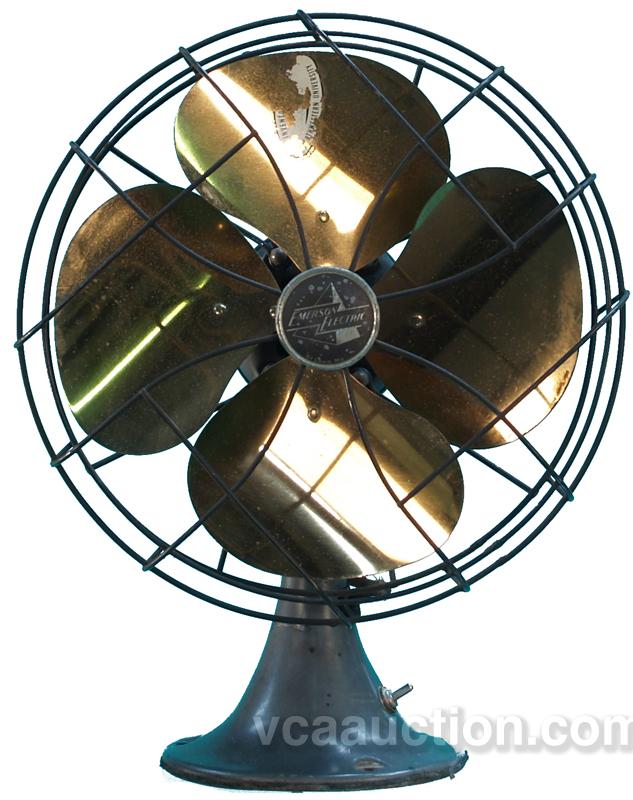 Emerson Electric Brass Blade Oscillating Countertop Fan c1949, fan type 6250F