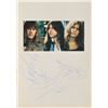 Vintage program for Emerson, Lake & Palmer's 1971 live album Pictures at an Exhibition, 5 x 7, signed inside in blue ballpoint by Greg Lake, Carl Palmer, and Keith Emerson, who also signs on the front cover. In fine condition, with light soiling, and a stray ink mark, to the cover.