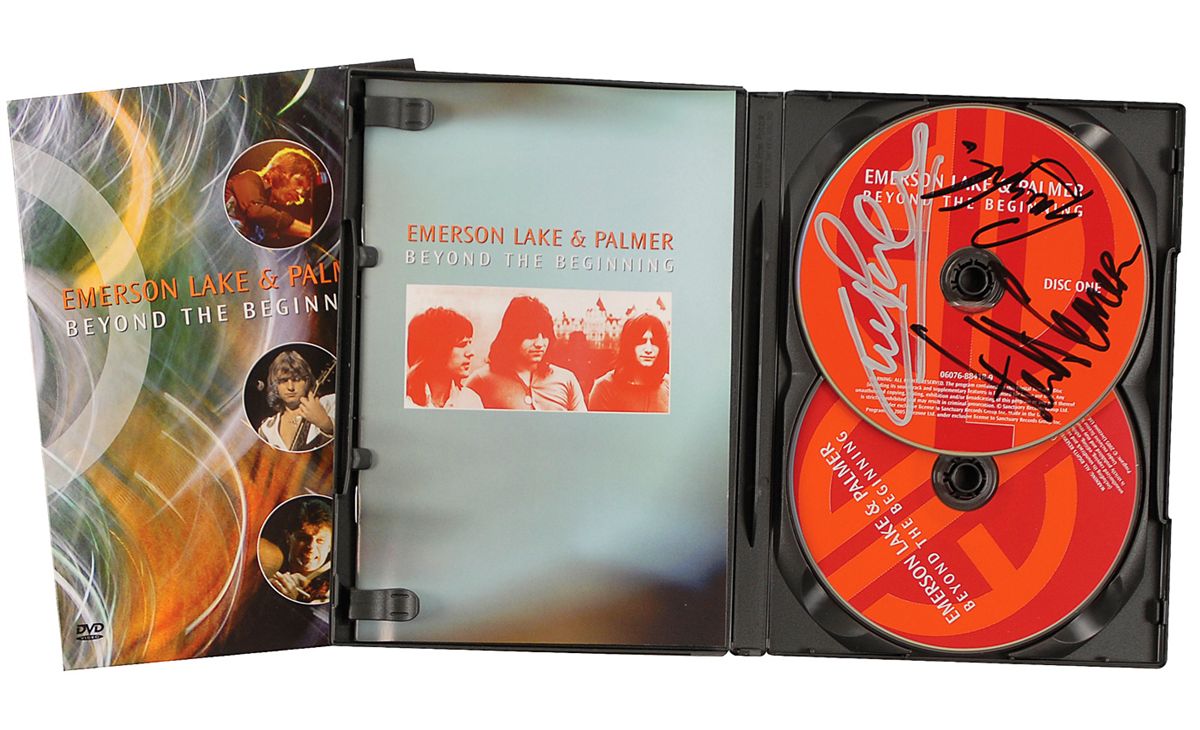 Beyond the Beginning DVD, signed on the first disc in black felt tip and silver ink by Keith Emerson, Greg Lake, and Carl Palmer. In fine condition.