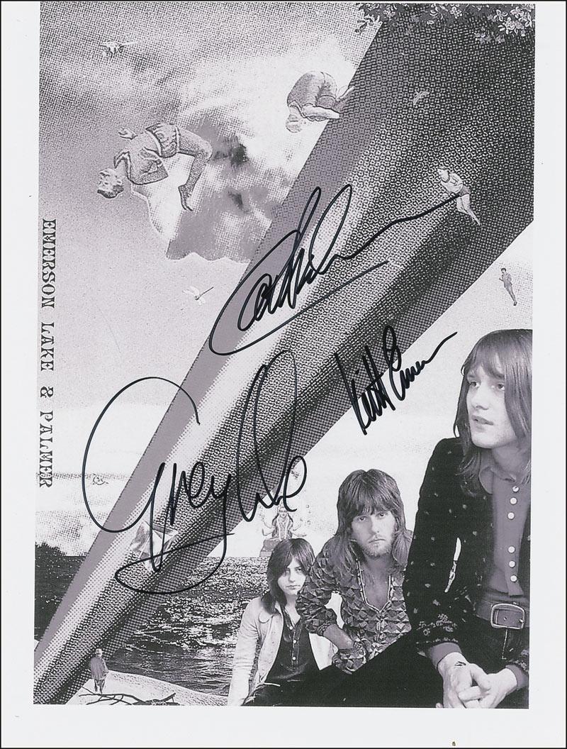 Laser print 8.5 x 11 photo, signed in black felt tip by Keith Emerson, Greg Lake, and Carl Palmer. In fine condition.