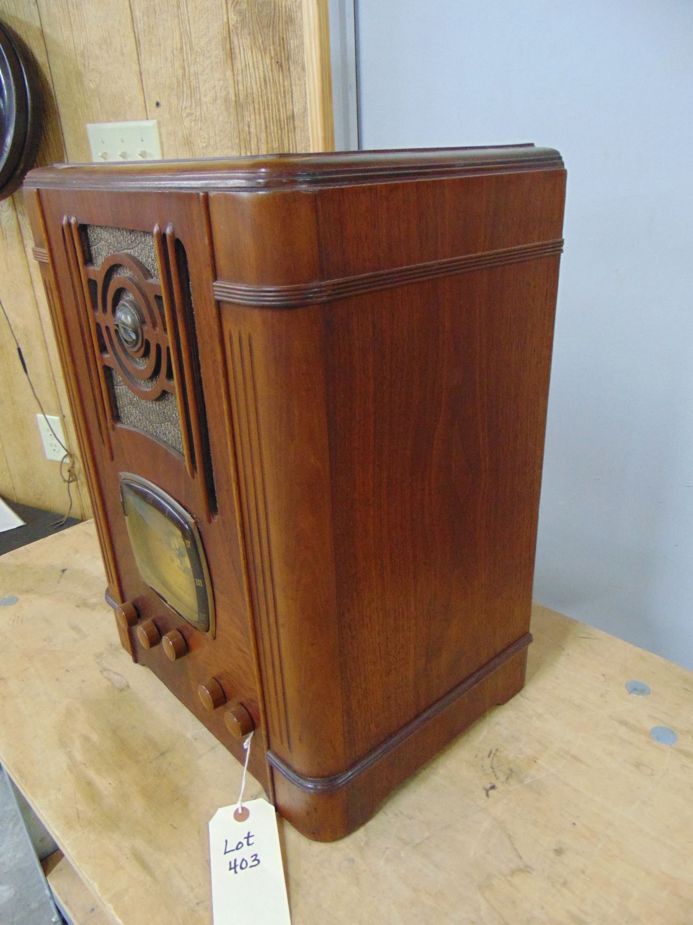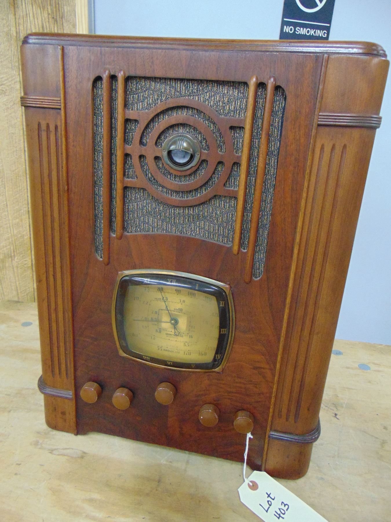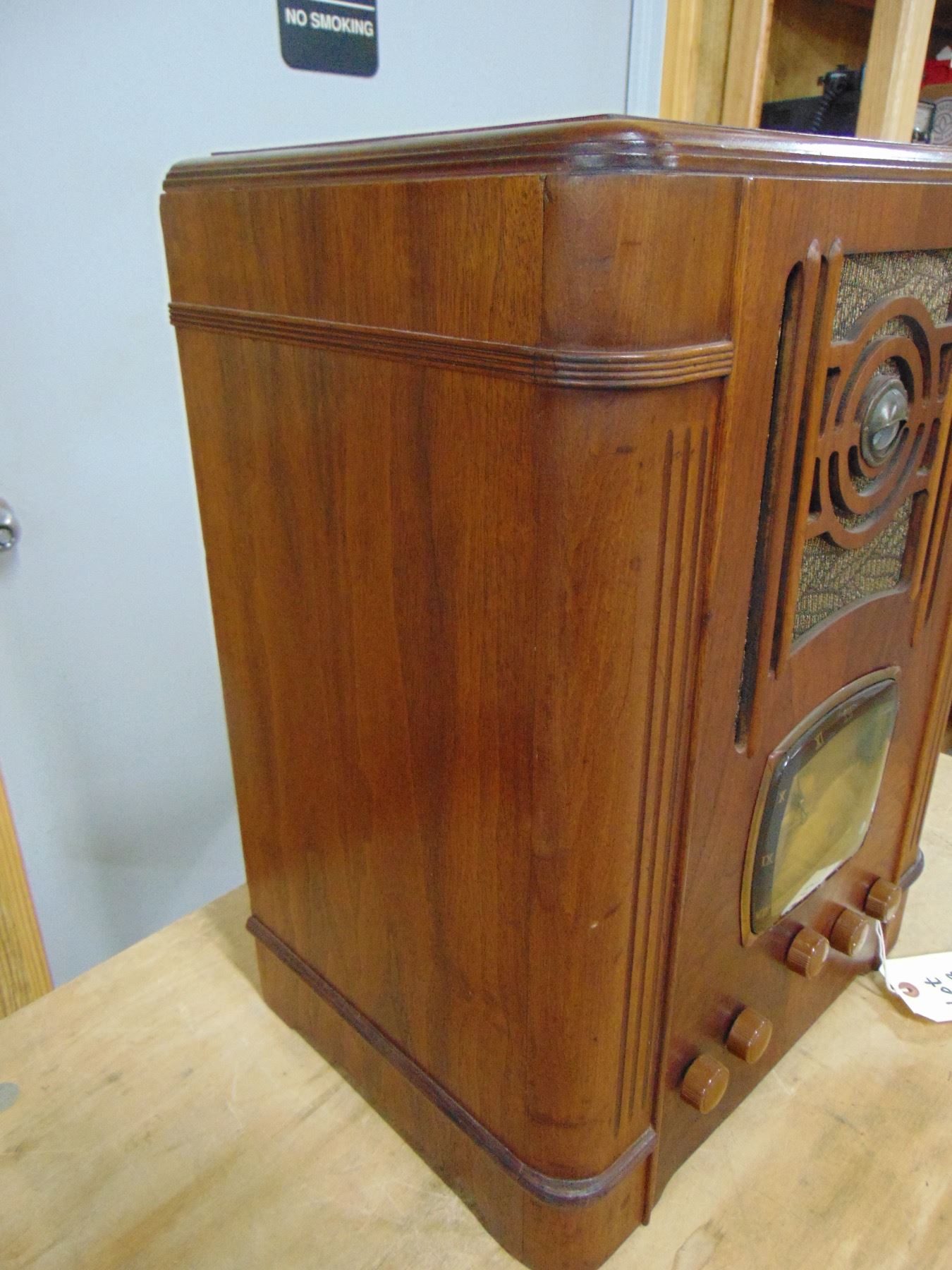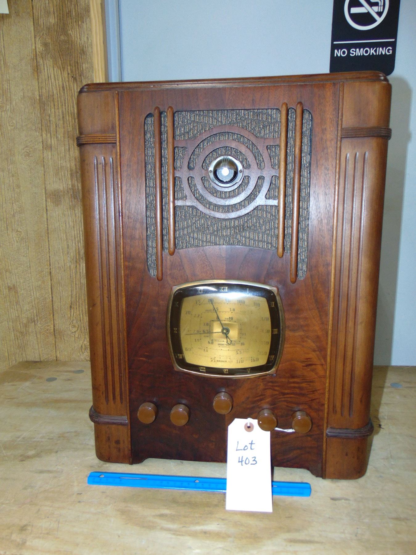 Large tombstone Emerson "Cyclops" table set model D-140; 10 tubes; multi-band; has bright tuning eye; very nicely restored and works well