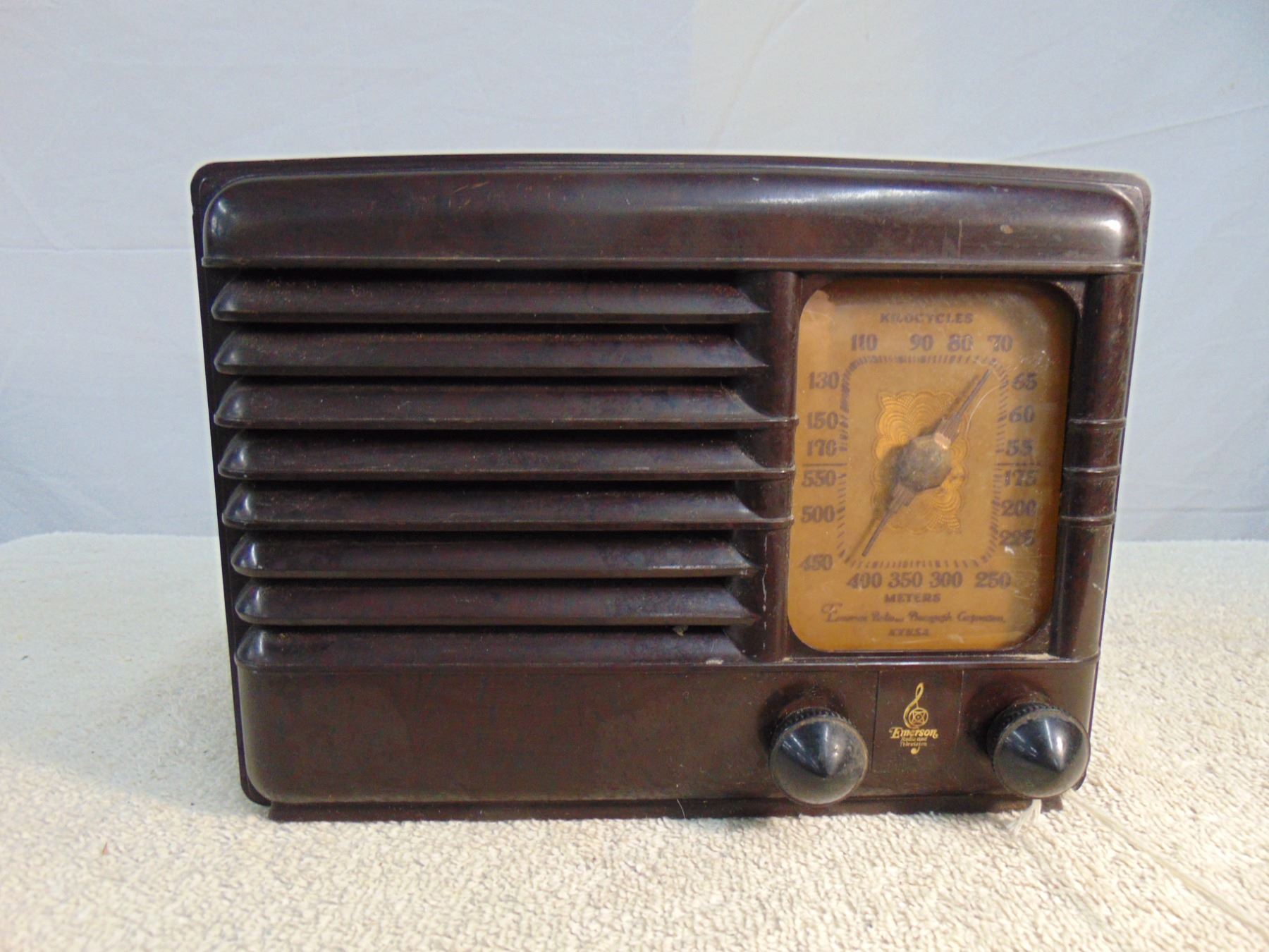 Emerson small brown bakelite table set; model BM-266; no cracks