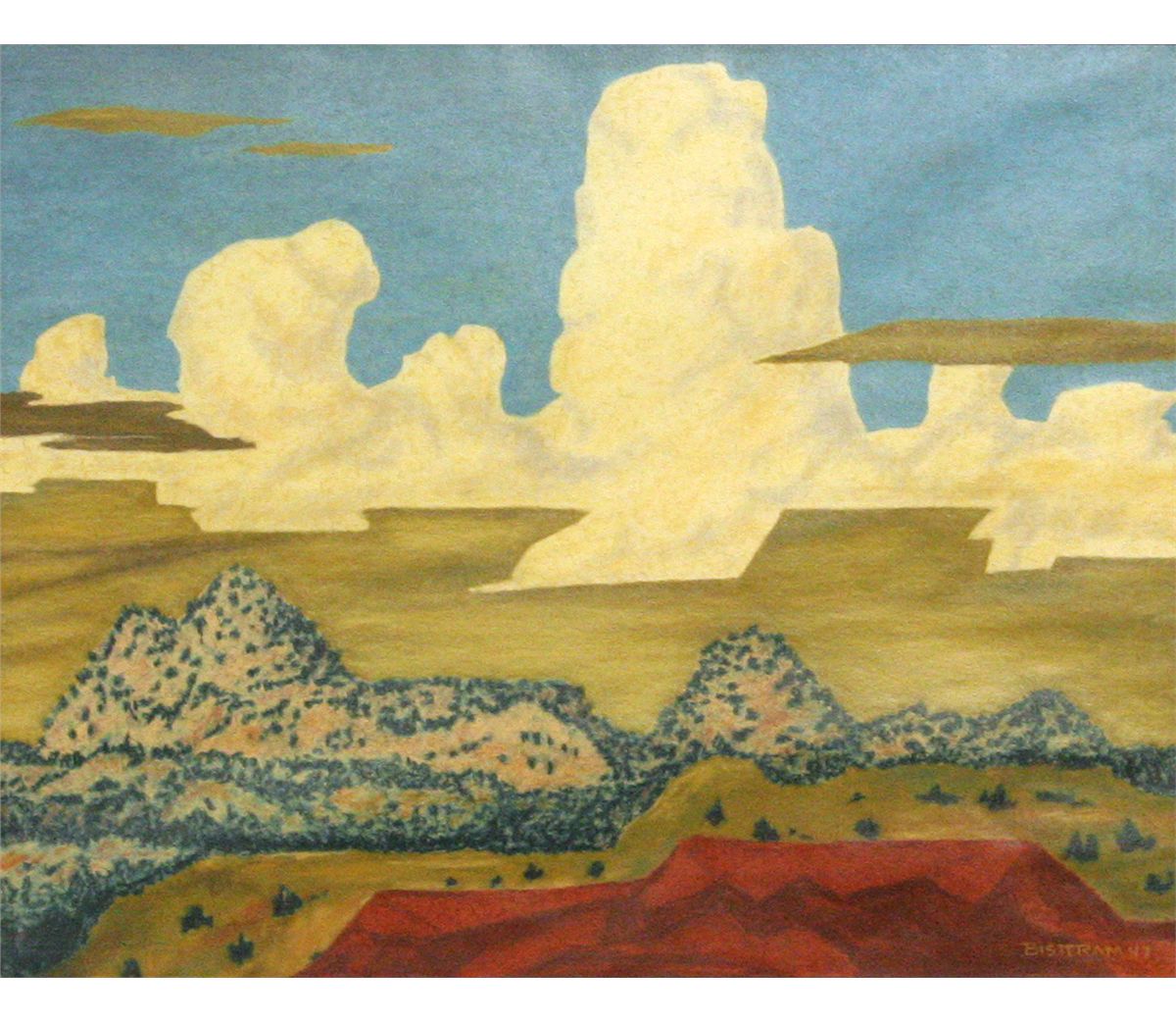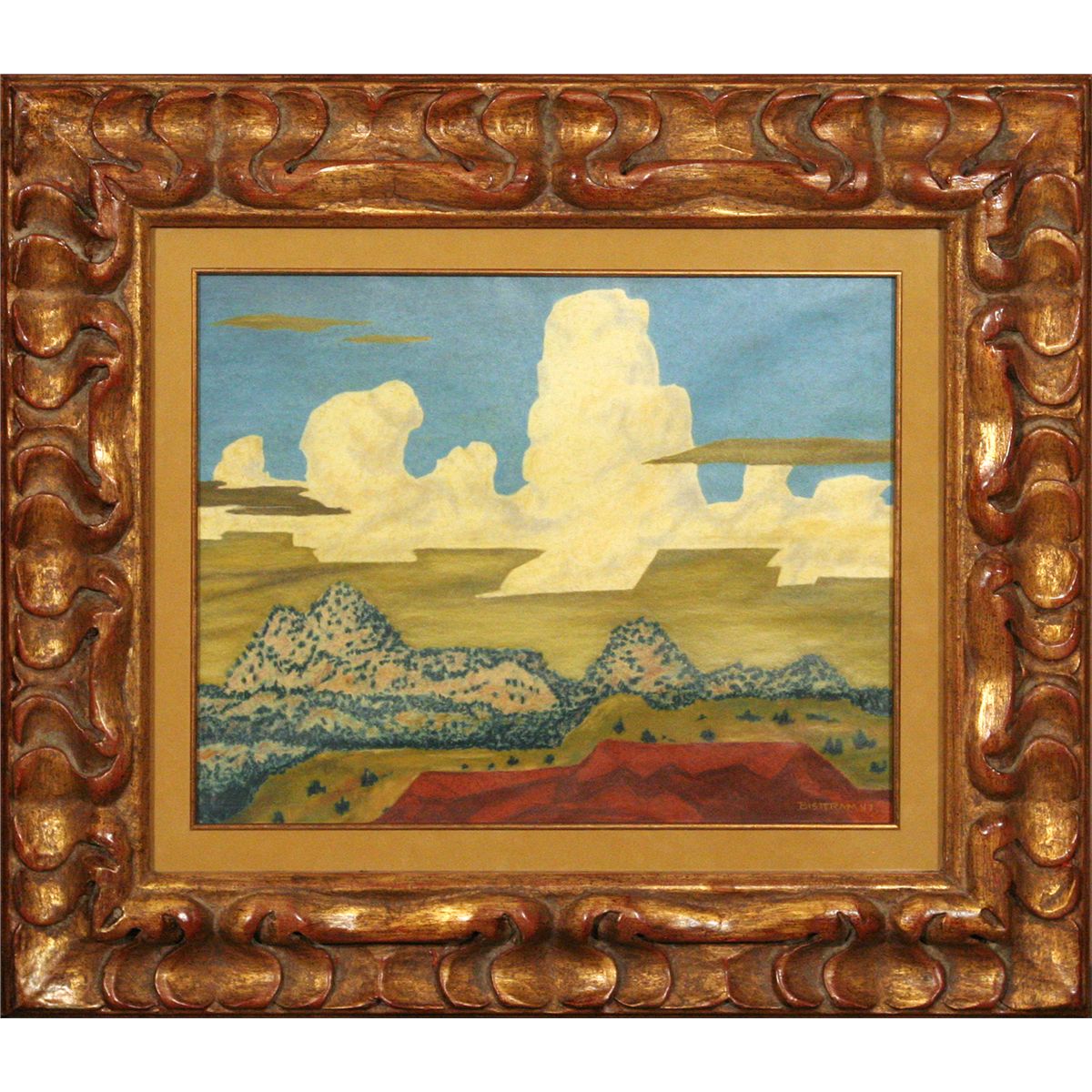 Emil Bisttram (1895 - 1976). Evening Drama. 14" x 18" mixed media. Signed lower right: BISTTRAM 47.