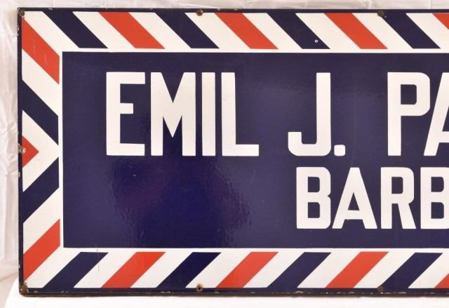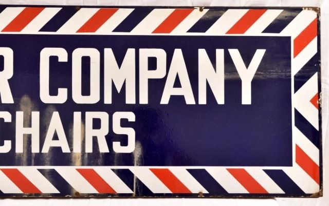 Porcelain sign. Backed by a wood frame, 20" x 76"